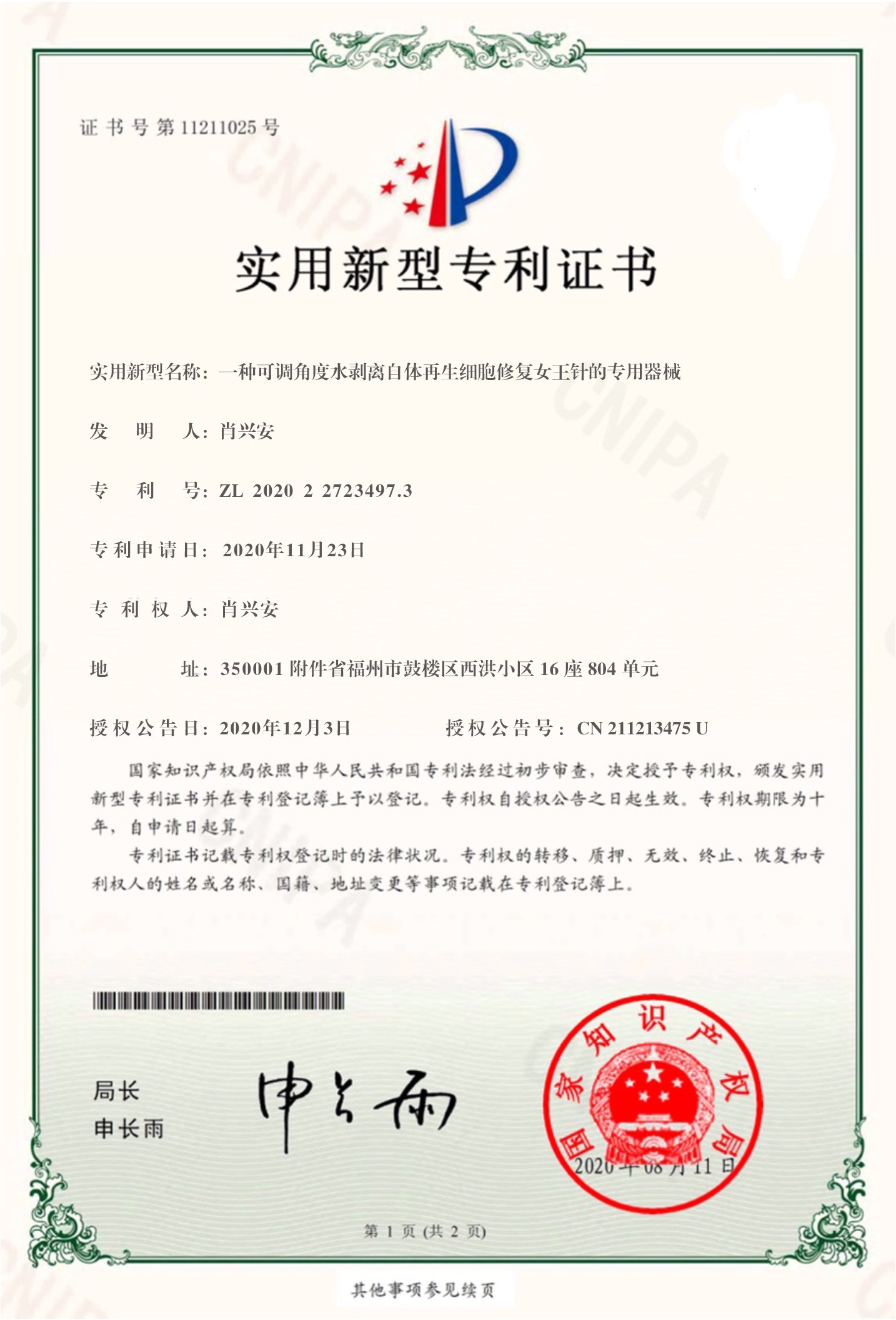 一种可调角度水剥离自体再生细胞修复女王针的专用器械
